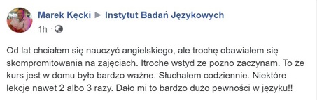 1) Szerzenie znajomości języka angielskiego wśród osób po 40 roku życia poprzez kursy językowe online.
